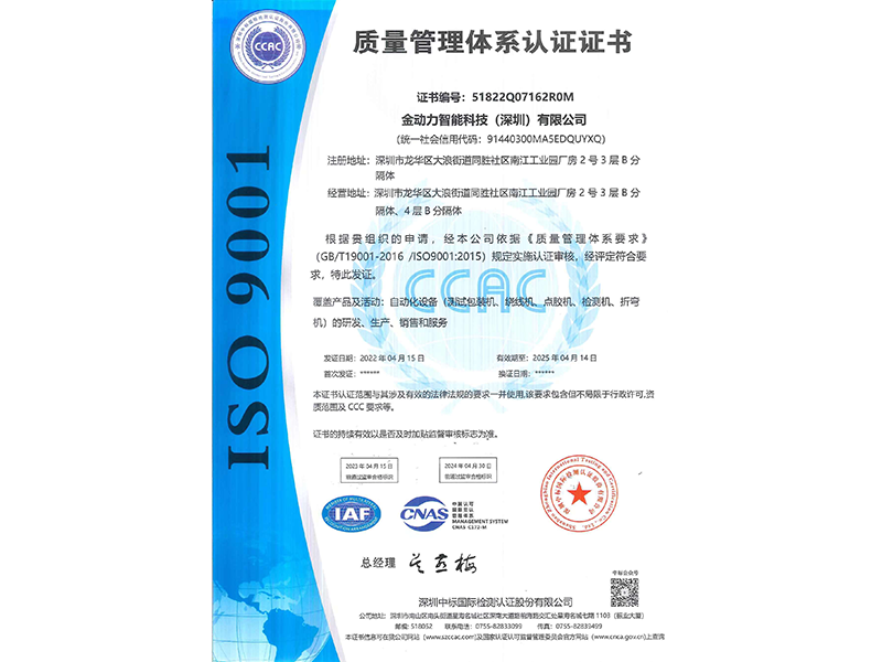 質量管理(lǐ)體(tǐ)系認證證書(shū)中文(wén)版